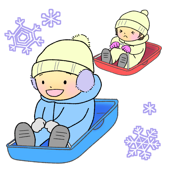 そり遊びをしている子のイラストです。
