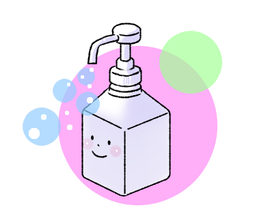 手指消毒液のスプレーボトルのイラストです。シュッと感染対策!