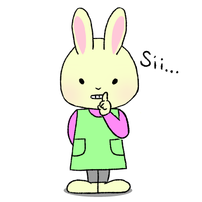 静かにするよう呼び掛けているうさぎ養護教諭のイラスト。