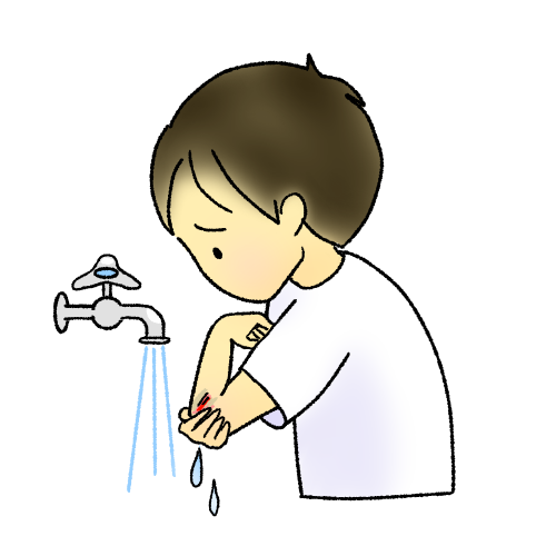 傷口を洗う肘をすりむいて(擦過傷)、流水で汚れを落としている子のイラストです。似ているイラスト フェイススケール① フェイススケール② フェイススケール③2021年8月3日投稿先 けがのイラスト, 保健指導, 応急処置けがの手当て すり傷 傷口 擦過傷 流水で洗う ← 過去の投稿へ 次の投稿へ →