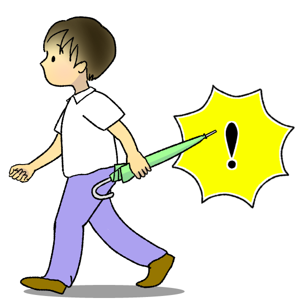 傘の持ち方(危ない)危ない傘の持ち方のイラストです。似ているイラスト NO(「いや」って言っていいんだよ) GO(逃げていいんだよ) TELL(信頼できるおとなに話そう)2023年7月11日投稿先 けがのイラスト, 保健指導, 生活安全教育 ← 過去の投稿へ 次の投稿へ →